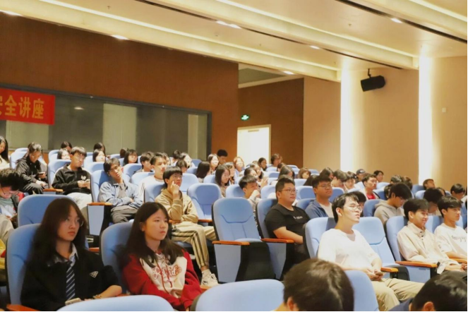 讲座中的学生们在认真地聆听郭部长与王老师的科普讲解。